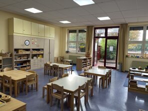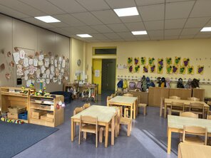 ![]() ![]() | 子どもたちが過ごすお部屋です。 広々としたスペースで、のびのびと活動をしたり 室内遊びを楽しんでいます。 | |||