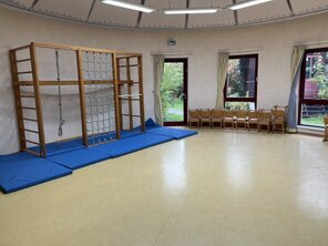 ![]() | リトミックやドイツ語の活動で使用します。 うんていやトンネルなどもあり、雨の日も十分に体を動かして 過ごしています。 | |||